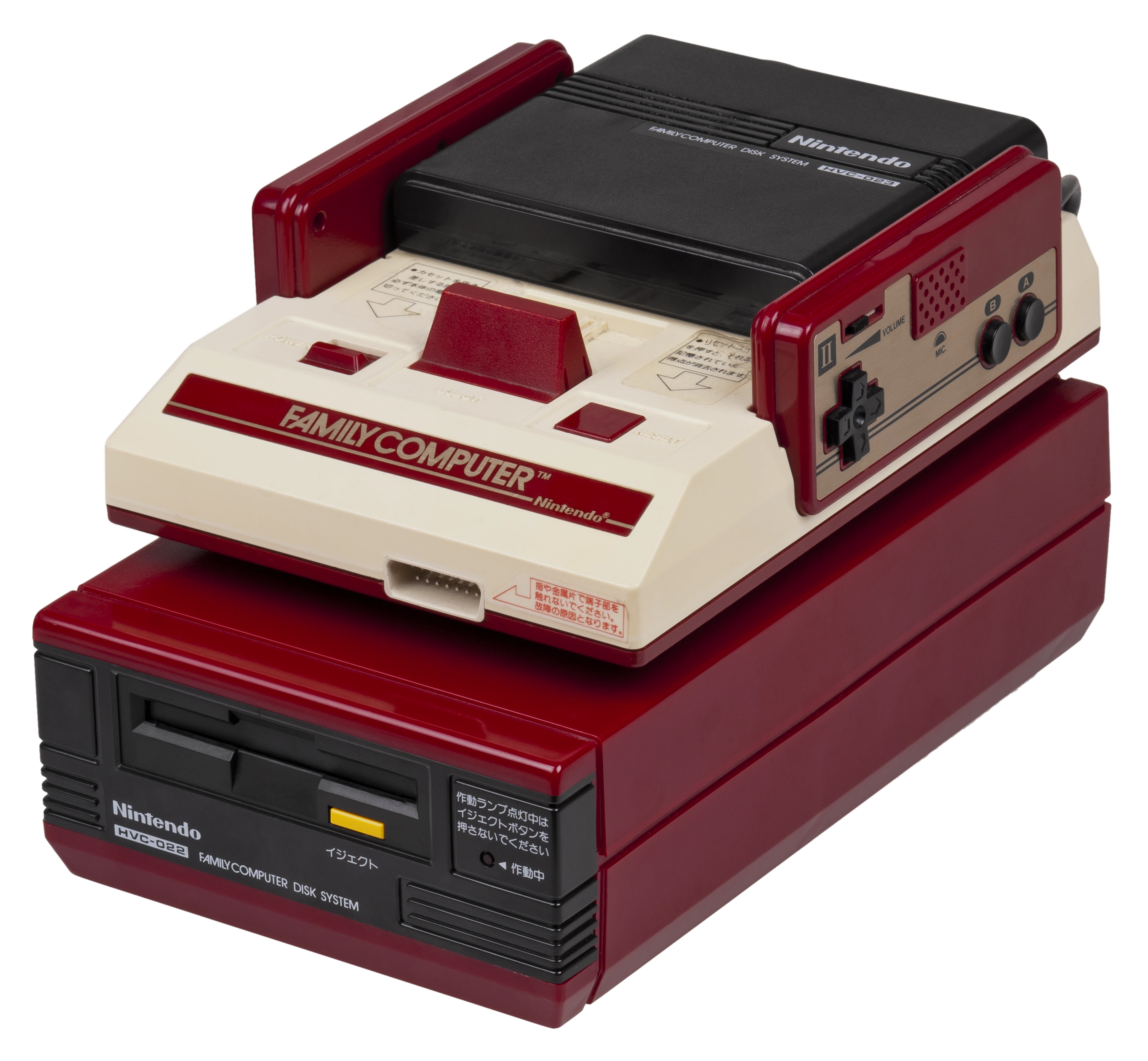 En Japón, un accesorio para el Famicom salió nombrado como el Famicom Disk System. El sistema de disco había conectada con el Famicom mediante un adaptador de ranura del cartucho y utilizada para archivos regrabables en disquetes de doble cara ("tarjetas disco") para almacenar los datos del juego. Estas tarjetas disco fueron para los primeros juegos de Famicom para permitir que un jugador salvará su progreso. Esto permitió ventas de juegos más baratos como un disco de fabricación que era mucho menos cara que un cartucho. Muchos de estos títulos más tarde serían lanzados como cartuchos de Famicom regulares, con ahorro de contraseña y memoria con respaldo de batería en lugar de memoria reescribible de los discos. Mientras que había planes para liberar el sistema de discos en América del norte, esto nunca sucedió y todos los juegos de del Disk System lanzados en América del norte fueron lanzados como cartuchos regulares.
