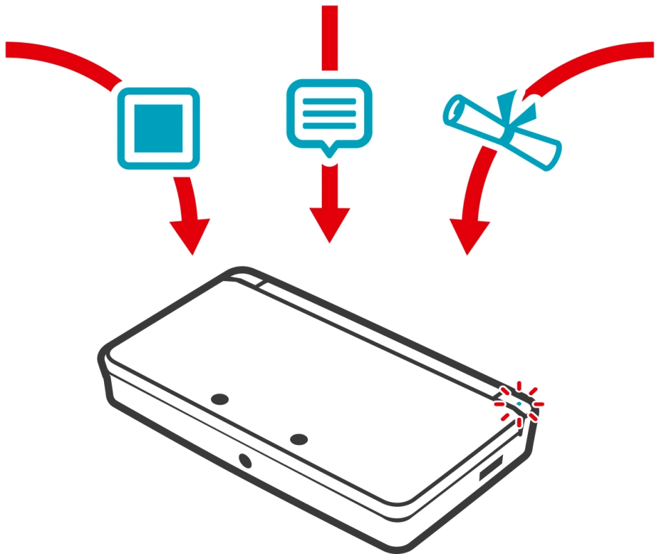 La representación de una nueva notificación vía SpotPass se puede apreciar mediante 10 parpadeos de color azul en la consola Nintendo 3DS, y en el Wii U GamePad de Wii U, también con un color azul, con la excepción de que el parpadeo es ilimitado.