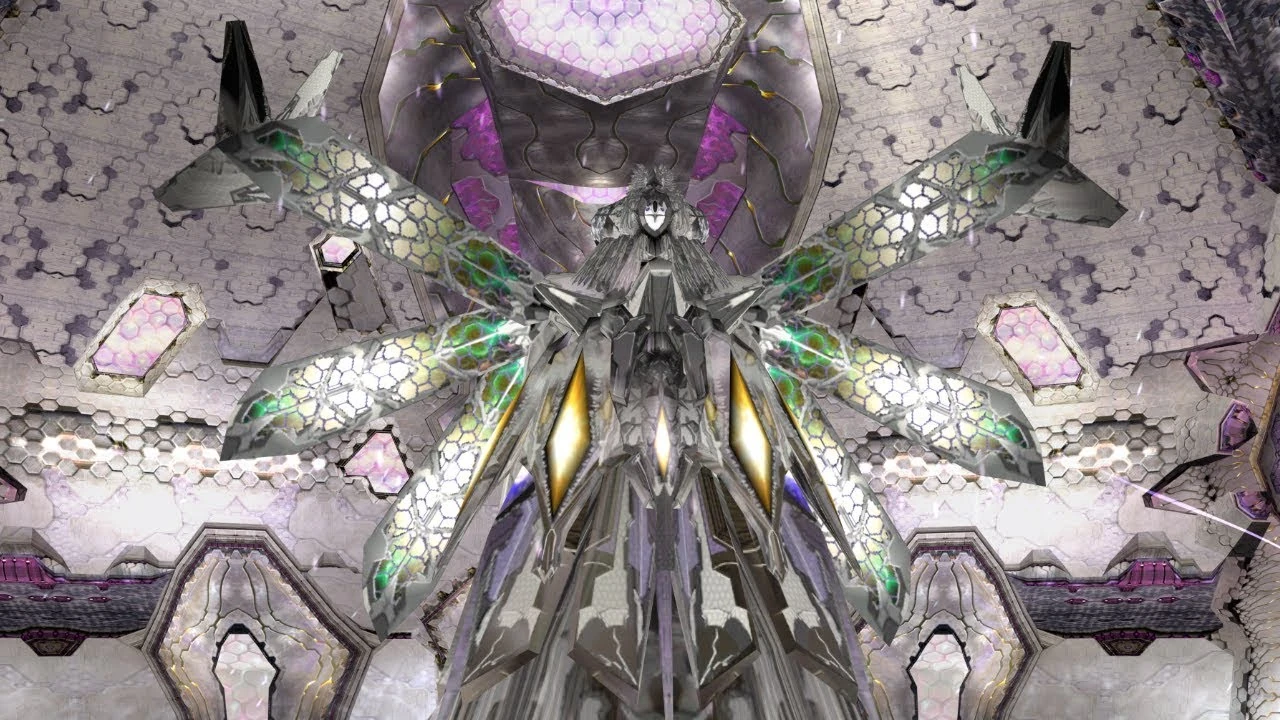 The first phase is done with the Arwing in All Range Mode. During this phase, the Aparoid Queen fights in her humanoid form. She does not move, but she can turn herself. She can also fire a hyper beam that deals lots of damage to those in front of her. The Queen's servants may also pup from the walls to cause additional nuisance. Her wings may also open and create an additional wall.