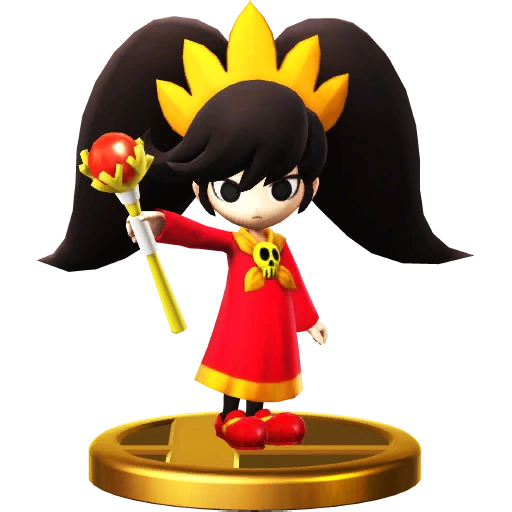 Ashley returns once again to reprise her role as an Assist Trophy in Super Smash Bros. Ultimate and retain all of her effects from the past game. She cannot be attacked by playable characters unlike other Assist Trophies. She's also a Support Spirit with a two slot trait that makes the player's Ultimate Smash meter charge faster.