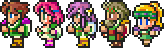 | Final Fantasy | Black Mage/Black Wizard • Monk|/Master • Red Mage/Red Wizard • Thief/Ninja • Warrior/Fighter • White Mage/White Wizard |