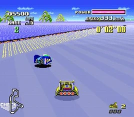 Big Blue is a fictional planet found in the F-ZERO series that is mainly (about 99%) covered by water. The buildings and oftentimes F-Zero tracks have obviously been built above the water, though sometimes you'll see both the buildings and track go through underwater tunnels and what not.