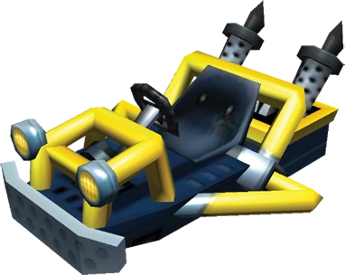 The Bolt Buggy is a kart body part in Mario Kart 7. It is a small yellow buggy with two eye-like flashlights in-front and a white front decorated in gray spots. It has a slender, rocket-like black thing made of steel in the back. In the bottom, it has a dark blue, but fading thing and it has two undersized, red lights in the back. It does not need to be unlocked like the Standard Kart and Royal Ribbon. Like most karts, only the badges changes when driven by different characters.