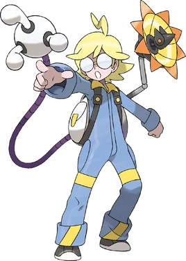 Clemont(JP) is the Gym Leader of the Lumiose City's Gym. He specializes in Electric-type Pokémon. He gives the Voltage Badge to Trainers who defeat him. He was also a central character in Pokémon the Series: XY.