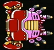 It will shoot bubbles out of its mouth and its eyes move. One of the bubbles has a bomb, so Mega Man must avoid them. Its claws will move to be vulnerable, but it's not important to destroy the claws. Blocks will appear and will try to hurt him, but some have no spikes. It also stays on the arena until Mega Man shoots it. Its eyes move slowly in Hard mode.
