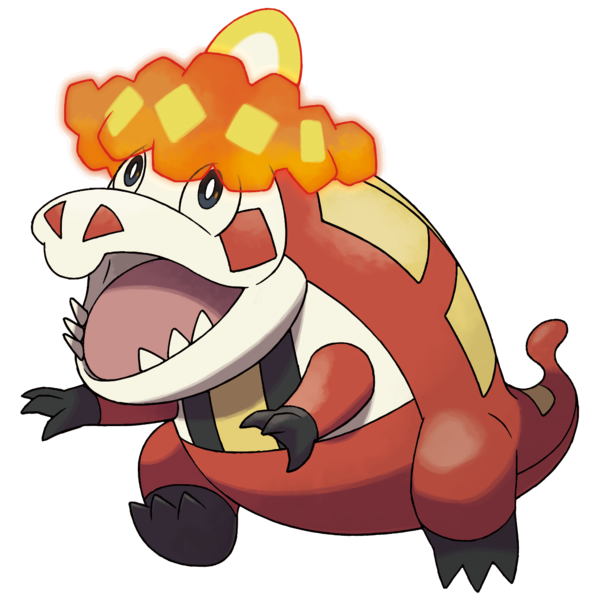 The valve in Crocalor's flame sac is closely connected to its vocal cords. This Pokémon utters a guttural cry as it spews flames every which way.