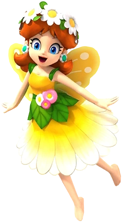 Daisy (Fairy) is a high-end tier variant of Princess Daisy from Mario Kart Tour. She was added on May 6, 2020 as a part of the Flower Tour, and her special item is the Heart.