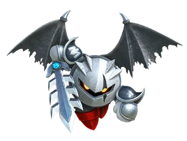 Dark Meta Knight is a recurring villain in the Kirby series. He is the Mirror World's version of Meta Knight, lacking his counterpart's chivalrous nature, Dark Meta Knight is ruthless, willing to sucker punch foes without warning and seemingly only cares about the orders of his boss, Dark Mind.