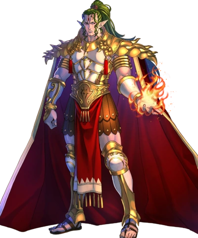 Before he departed, Naga gave him one of her fangs that was carved into a blade that would be named Falchion. This weapon was intended to be used against him and his sister by humans should the need arise where they degenerate into madness and need to be put down. The two siblings traversed the ocean for seven days before they finally reached the continent of Valentia, which they would claim as their new home. There, they would become patron deities in the land.