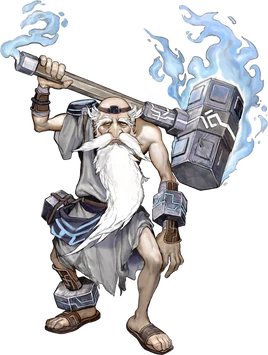 Dyntos is a character from Kid Icarus: Uprising. He's the God of the Forge, the creator of the Three Sacred Treasures, and the creator of most weapons in the game. Due to his role as God of the Forge, he is most likely based off of the Greek God Hephaestus.