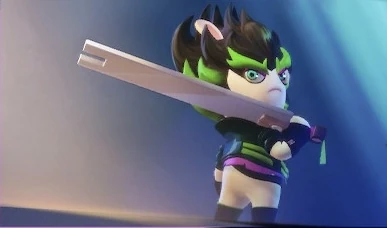 Edge (JP) is a Rabbid character in Mario + Rabbids Sparks of Hope. Compared to most Rabbids, she is more free-willed. She was a former leader of the Spark Hunters who were created by Cursa, who worked for them until Edge defected from them, after seeing how evil Cursa was in order to save the Sparks from them and would end up joining Mario and his team of heroes consisting of those in his own franchise and the Rabbids based off of them. Edge is a powerful swordswoman who was willing to do what is right to ensure justice has been served and she helps the heroes rescue Twinkle from Cursa's forces and has since then been their valued member since then. She is generally no-nonsense unlike the rest of the Rabbids before her and does not talk about herself very much. Her mission was to ensure the safety of the universe.
