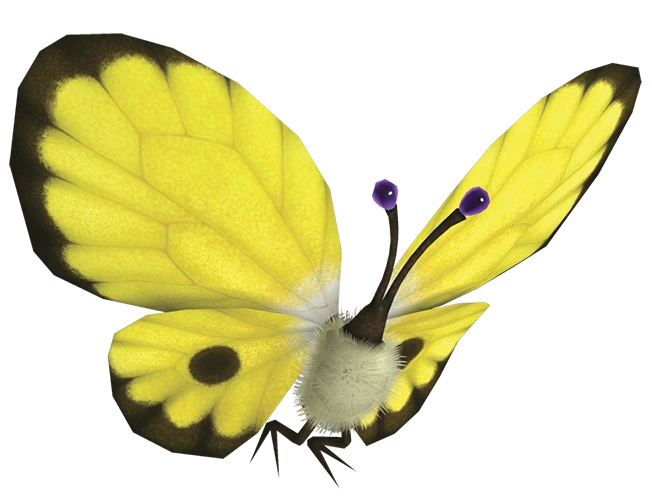 The Yellow Spectralid is a Flitterbie remarkable for its yellow wings and black marks. Like other Flitterbie, they are harmless, they can also drop Nectar when defeated. They are pretty common and can be found in every area of Pikmin 3 and land on almost every surface even sleeping Red Bulborb. They can also be killed in one Pikmin throw like most other Flitterbies.