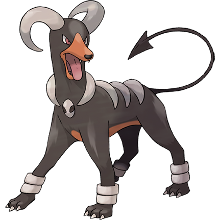 | Pokémon Sapphire | In a Houndoom pack, the one with its horns raked sharply towards the back serves a leadership role. These Pokémon choose their leader by fighting amongst themselves. |