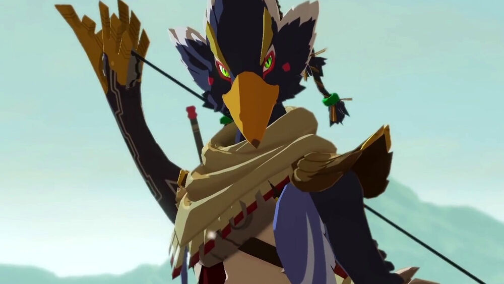 As Link, Impa, and Terrako travel to Rito Village during a blizzard to find a warrior who will pilot Divine Beast Vah Medoh, some Rito warriors saw them and fly off to report to their commander, Revali who urges them to take action. Revali declares Rito Village his home and refuses to let them come any closer. The group were suddenly attacked by the Rito, who believed that they were invaders and were forced to fight back as well as Ganon's monsters. When the bridge to the village was destroyed by a Rito Captain, they had no choice but to take another route and when they do arrive at the village, they are confronted by Revali. During the duel, Revali managed to disarm Link of his shield with a kick of his talons and creates a smokescreen to surprise him by going for the kill from behind. Just before Revali can shoot Link in the back at point-blank range, Princess Zelda arrives in her winter attire and pleads for them to stop their battle and Link managed to deflect the arrow on time. After everyone calms down, Revali explains his actions that Rito Village had been repeatedly attacked by monsters led by another Guardian similar to Terrako, while he and his countrymen barely managed to fend them off and have since then become more paranoid of further attacks since then. As the princess was relieved that neither Link nor Revali were hurt, Impa is troubled by the thought of another Guardian similar to Terrako, and the princess states that they must come up with a strategy. Revali joins in on the conversation and accepts her proposition on him becoming the Rito Champion of Divine Beast Vah Medoh and is honored to do so, but he is clearly uneasy about Link, asking if the so-called "pathetic knight" is even worthy of wielding the legendary Master Sword. Terrako startles everyone by declaring itself a knight to the princess as well, much to Revali's chagrin and disbelief.
