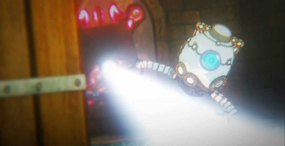 At the same time Princess Zelda's power had awakened to protect her appointed knight, Link; it caused a mysterious Diminutive Guardian named Terrako to roll out of a box in Zelda's Study where it witnesses the destruction around them and hears Zelda's desperation to protect everyone. Taking her words into consideration, it creates a Gate of Time to go back to the time where the Calamity has yet to happen. However, it's intentions did not go unnoticed by a corrupted Guardian who attempts to attack it, but Terrako narrowly avoids the laser as it enters the Gate of Time. Unbeknownst to it, some of Ganon's Malice pursues it through the Gate.