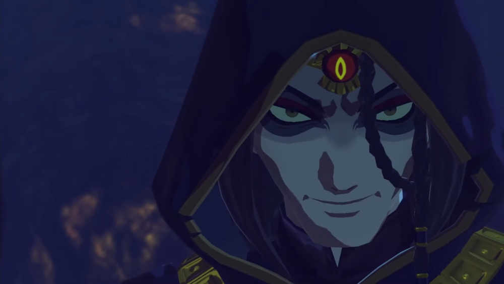 At the same time, Harbinger Ganon meets a mysterious cloaked man named Astor who happens to be fortune teller and a member of the cult that worships Calamity Ganon as a god of death that will bring about Hyrule's fall. It shares the vision of Calamity Ganon bringing forth an apocalyptic disaster that it will bring with him which impresses the cloaked man. The Guardian of Remembrance DLC shows that he brought it to his fellow members of the cult where they conduct a demonic ritual as Harbinger Ganon gave revealed its vision to them, only to use its Malice to kill each of the cultists. One of them desperately begs Astor to stop the ritual, though he ignores his pleas as the distressed cultist also falls to the ground dead. With Astor as the only survivor, he believes that he is chosen as Ganon's dark prophet as he leaves with a laugh. He would ally himself with the Yiga Clan to ensure the events presented to him came to be. He sets off not only to revive Ganon, but to dispose of anyone who poses a threat to Ganon's imminent return as the prophesy had foretold.