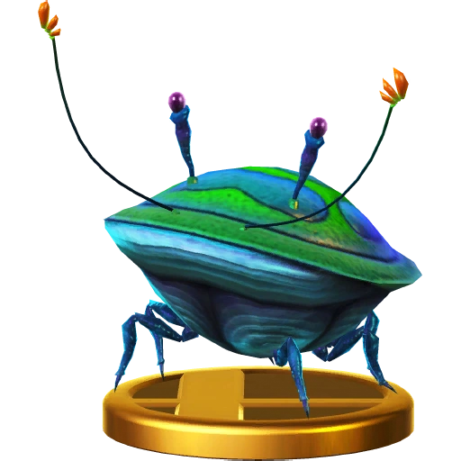 Iridescent Flint Beetles are members of the Flint Beetle Family in the Pikmin series. They drop pellets and nectar when a Pikmin lands on their back. The Iridescent Flint Beetle appears in all 3 entries of the series. It was also a trophy in Super Smash Bros. Brawl and the Wii U version of Super Smash Bros. for Nintendo 3DS/Wii U.