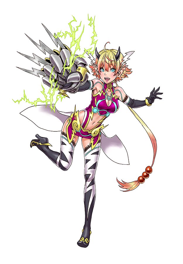 Kora is a Rare Blade in Xenoblade Chronicles 2. She can grant tremendous power to her Drivers, Rex, Nia, Zeke, or Mòrag, and their allies. Kora uses the electric element, wields Knuckle Claws, and acts as a Healer in battle. She has a very flashy appearance, along with a lightning motif, as she wears a bright purple outfit with lightning designs, thigh high socks with lightning patterns, and stylish black heels. As a weapon, she wields in her right hand a metallic glove with four claws shaped like lightning.