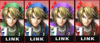 - Green clothes? Pointy hat? Yep, it's Link, all right! In this game, his sword and shield make for effective attacking and blocking, and his bow, bombs, and boomerang will spice up any battle. He's even brought his Clawshot for grabbing enemies and edges. The hero of Hyrule is really kitted out for a brawl!