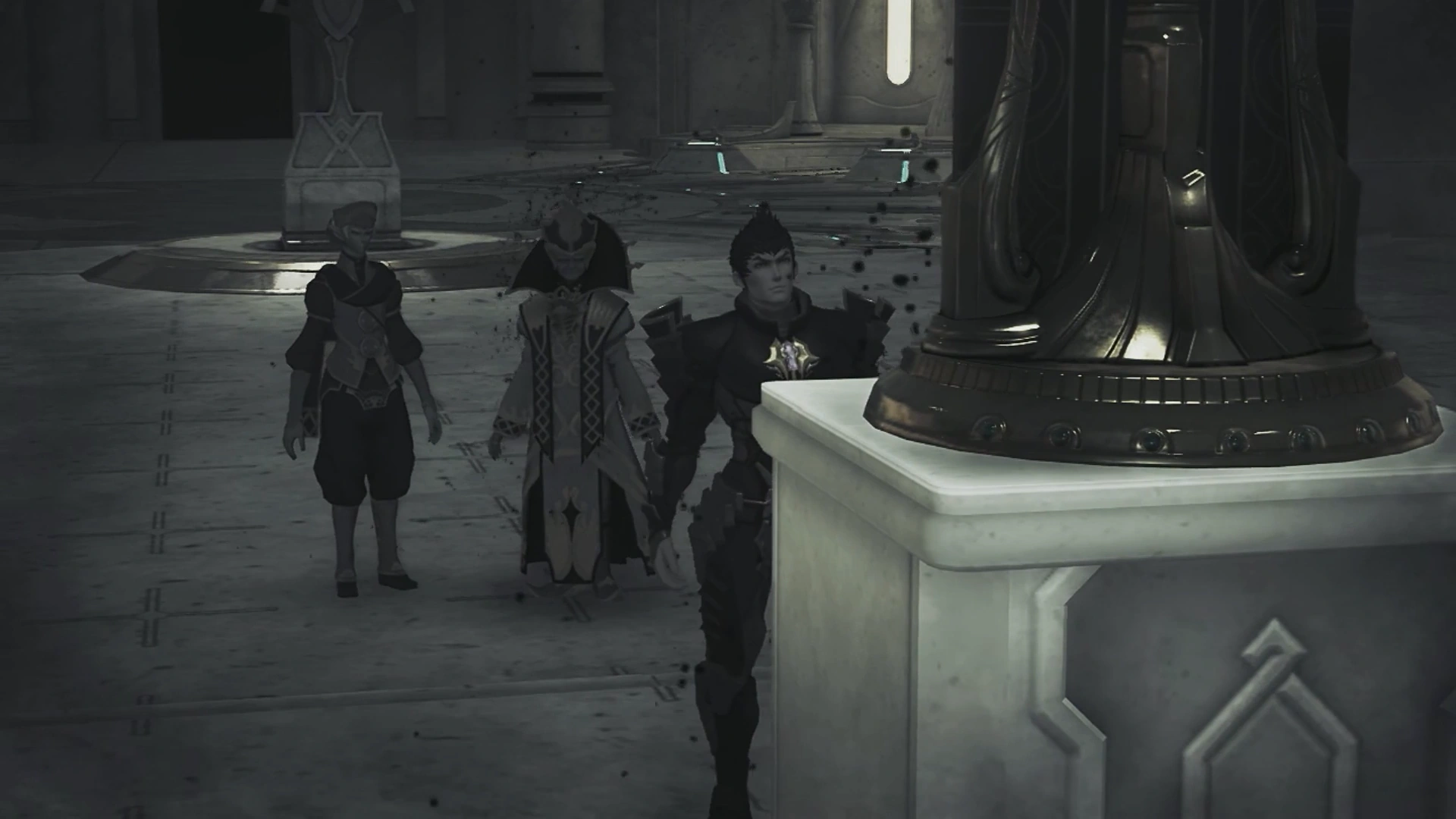 Malos standing before the original Aegis walongside Amalthus and Praetor Rhadallis.