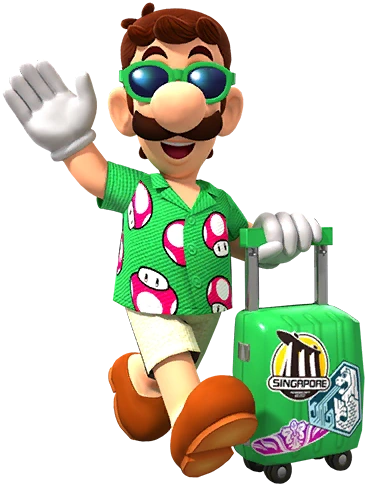 Luigi (Vacation) is a high-end tier variant of Luigi and is from Mario Kart Tour. His special item is the Boomerang Flower and he debuted on January 12, 2022 as a part of the Singapore Tour. Their are several other versions of Luigi in Mario Kart Tour, them being normal Luigi, Penguin Luigi, Builder Luigi, Dr. Luigi, Luigi (Classic), Luigi (Lederhosen), Luigi (Painter), and Cat Luigi.
