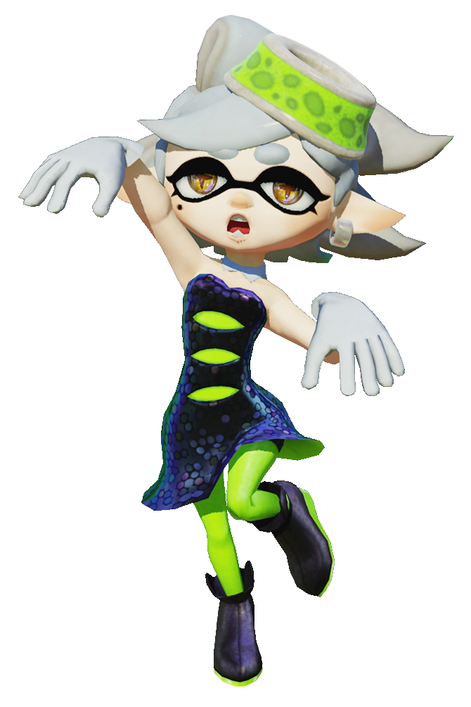 Marie is a part of the Squid Sisters pop idol duo and a host of Inkopolis News, alongside her cousin Callie. Her signature color is lime green.