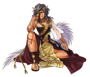 Nailah is a playable character in Fire Emblem: Radiant Dawn. She is the ruler of the lost nation of Hatari, located to the east of Daein. She is a white wolf and through the skill Formshift has the ability to transform (and keep her wolf form) whenever she wants. She first becomes playable in Part I, Chapter 8: Glory Unwanted and helps Micaiah along with Volug and Rafiel. She is required in that chapter. After the end of Part I, she goes with Tormod, Muarim, and Vika to Gallia. After the last battle, she returned to Hatari with recent events graven in her heart; she hoped to migrate her people across the Desert of Death.