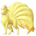 Ninetales(JP) is a species of Pokémon in the series of the same name. It is a Fire-type Pokémon that made its first appearance in the first generation games Red and Blue. In Alola, it developed into an Ice and Fairy Pokémon and now evolves with an Ice Stone.