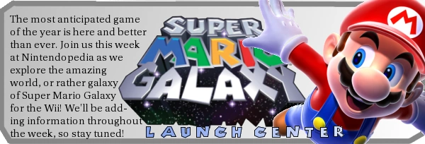 Super Mario Galaxy is unarguably the most anticipated game of the year. Forget your Metroids, your Halos and your Legend of Zeldas, Super Mario Galaxy is here and ready to rock the gaming world. November is not only the release-month for Galaxy, though it's also the release date of the game that should be recorded in all history books; the game in which the industry's two biggest gaming icons - Mario and Sonic, will for the first time compete with each other in the same game with the release of Mario & Sonic at the Olympic Games for both the Wii and the Nintendo DS. However, this launch center is for one purpose and one purpose only - not to promote the greatness that is Mario & Sonic, though to act as a brilliant guide for Super Mario Galaxy! Be sure to look all over this guide to get the scoop on the game. We here at Nintendopedia did everything to our capabilities to bring you the best of Super Mario Galaxy by looking far and near throughout multiple magazines, internet websites and just general knowledge that's already stationed in the ol' noggin. The guide will not only feature more information than the actual Mario Galaxy page, though will also, in time, have a review as well... And did I mention the multiple special features that will take a look at the series? Stay tuned, because each day, new things are sure to pop up on the Super Mario Galaxy launch center, brought to you by Nintendopedia (which is brought to you by Codenamerevolution!). | |