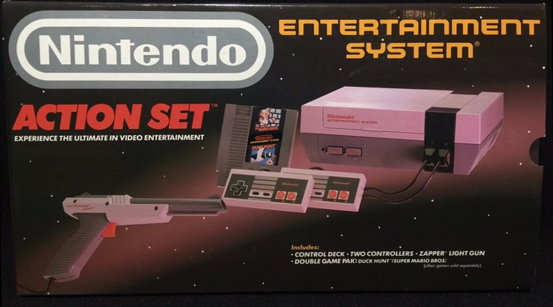 In 1987, Nintendo released the Basic Set which contained just a console, two NES controllers, and The Official Nintendo Player's Guide, a book which had information on all of the then-released video games for the NES. The NES Action Set was released in November of 1988 for $149.99. With the new bundle came the omission of the two that introduced the console. The Action Set contained the Nintendo Entertainment System, an NES Zapper, two NES controllers, and a cartridge that contained Super Mario Bros. and Duck Hunt known as Super Mario Bros./Duck Hunt.