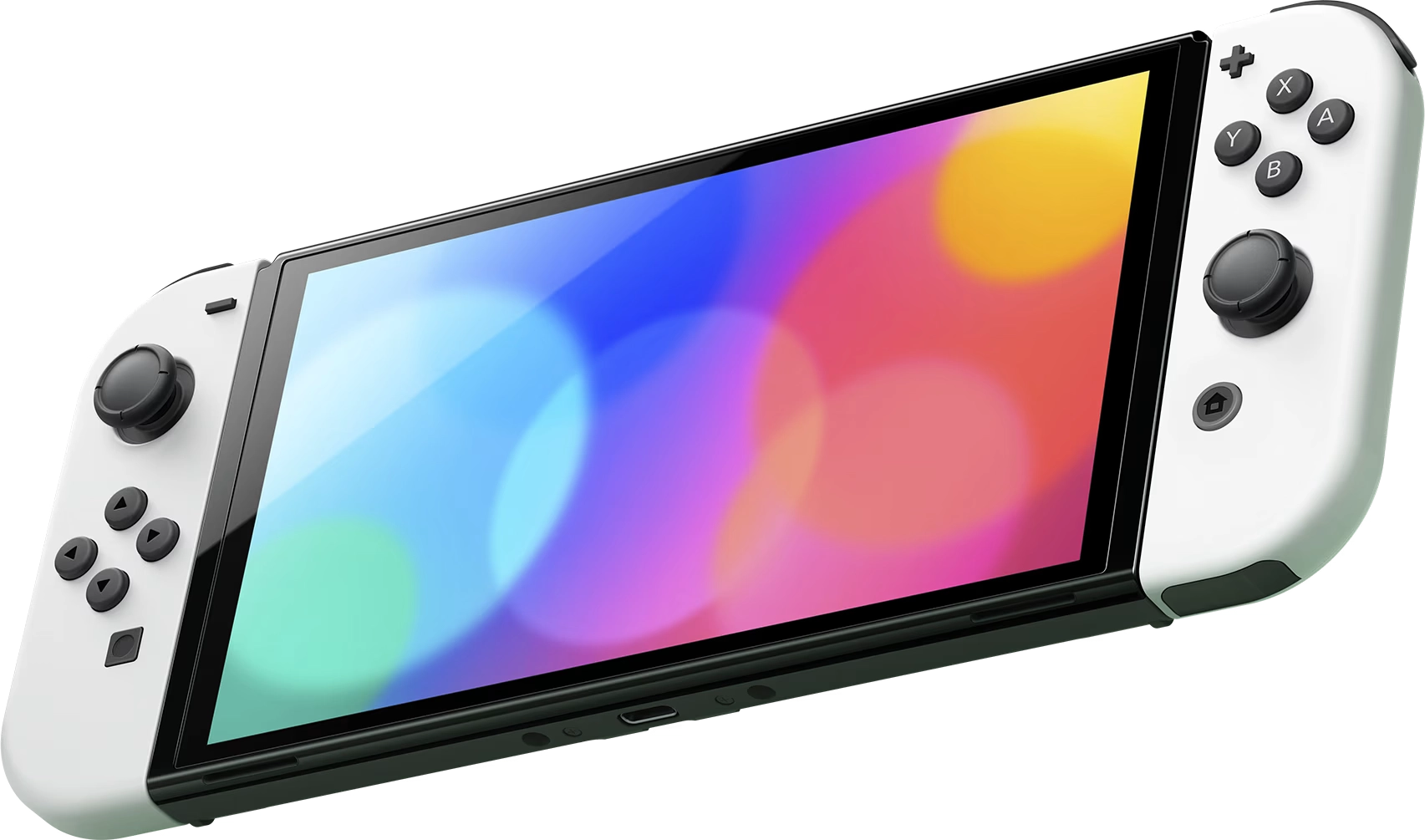 The Nintendo Switch OLED Model is an enhanced revision of the Nintendo Switch that was announced on July 6, 2021 and released on October 8, 2021. It features many new improvements, such as a 7-inch OLED screen with higher contrast and saturation, improved audio with more clarity, a wider, adjustable kickstand, a dock with a dedicated LAN/Ethernet port, double the internal storage (64GB compared to the regular Switch's 32GB.), and more.