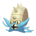 | Pokémon Shield | This Pokémon is a member of an ancient, extinct species. Omanyte paddles through water with its 10 tentacles, looking like it's just drifting along. |