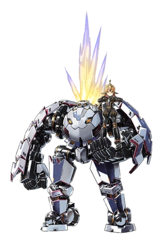 Poppibuster is a Nopon shaped mech piloted by Poppi MK. II that can be used by every Drivers other than Tora since his main purpose is to have Poppi fight with multiple Drivers at the same time. Poppi MK. II has no mind of her own and is herself remotely controlled by the original Poppi. The Poppibuster has his own A.I however and is programed to assist Poppi. The Poppi Buster's element is light and is equipped with a Shield Hammer as his weapon.