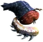 "This gigantic beast is wrapped in a hard shell. In an atypical evolution, the right front leg of this creature is hypertrophic, taking on the function of an arm, rather than a leg. Its asymmetric physical development is unique in the natural world. One unlucky explorer's incorrect conclusion that this creature adheres to a pattern of peaceful, quiet behavior led to an unfortunate incident. In fact, this beast exhibits intensely hostile, aggressive tendencies, aiming at prey and ramming them at full speed."