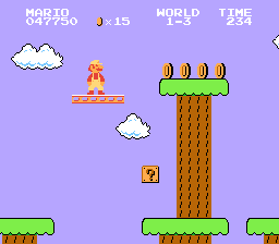 Mario (in Fire form) in World 1-3 in Super Mario Bros..