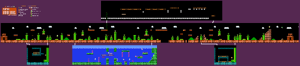 Nakago and his team, Systems Research and Development (SRD), colored the background blue in some levels[5]. This was unusual, because video games released during this time period usually had a black background, to avoid eye-strain and to avoid getting distracted by the bright colors. After coloring the background blue in some levels, Nakago then started designing maps for this game. Miyamoto wanted the levels to be around a minute long and he told SRD to do so. He then realized that it usually takes about a second to travel across a screen, and that numerous screens would have been implemented in one stage. SRD first thought that Miyamoto had requested them to make 60 screens per stage, but Miyamoto then explained that obstacles in each screen would slow down the player's progress, which resulted in an average of about 12 screens per level. The stage with the most screens has only 32, which is about half of what SRD had originally expected.