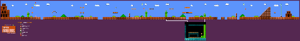 The objective of the game is to simply move right and reach the end of each stage. The player is able to move left to an extent, though once they start to move left the camera will stay in place. When moving right, the camera centers on the player. If the player goes as far left as possible and then starts to go to the right once again, then the camera won't remain centered on them until they reach the center. In Super Mario Bros., the player is unable to reach the far right of the stage.