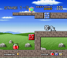 In the second Satellaview version the rainbow once again fell apart "due to popular request from Satellaview users", and Hakkun set out to retrieve the shards again. In '98 Winter Event Version, Hakkun travels to a neighboring island with a snowy climate to collect the shards of the "Rainbow of Friendliness" and bring their rainbow back as well.