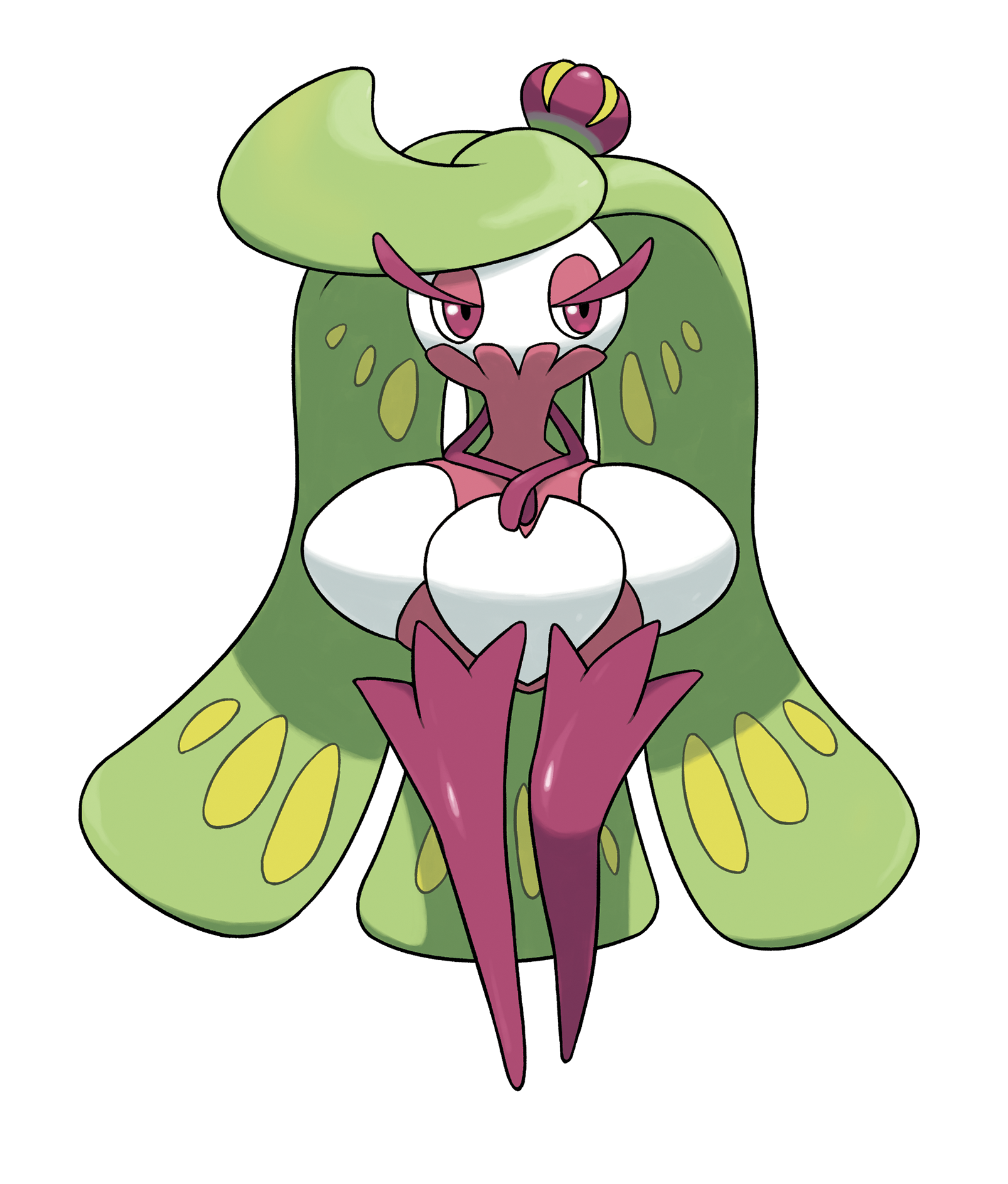 This Pokémon is proud and aggressive. However, it is said that a Tsareena will instantly become calm if someone touches the crown on its calyx.