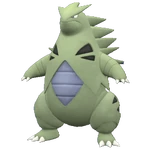 It wanders through the mountains seeking opponents to fight. If it finds an opponent that's not worthy, Tyranitar ignores it and wanders on. Mega - Due to the colossal power poured into it, this Pokémon's back split right open. Its destructive instincts are the only thing keeping it moving.