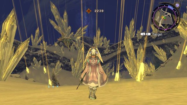 Valak Mountain is an area located on Bionis' right arm in Xenoblade Chronicles. The mountain region leads to Sword Valley. At night the crystal like structures send a yellow beam of light into the sky, illuminating the whole mountain. There are no permanent settlements in this zone, and its only inhabitants are a couple of Nopon explorer parties coming from Makna Forest to which the mountain is connected. After the events of the Mechonis Core a group of High Entia refugees can be found in the Sealed Tower.