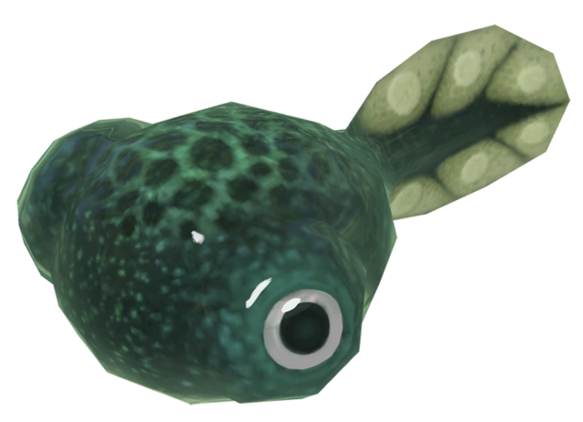 The Wogpole is a creature found in the Pikmin series. It is a an amphibious animal that resembles, or could quite possibly be a tadpole, it is said to be a Yellow Wollywog in its earliest stage. They are almost always found swimming in swiftly in water, but on a few rare occasions can be found outside it flopping around uselessly. They are also usually in small groups.